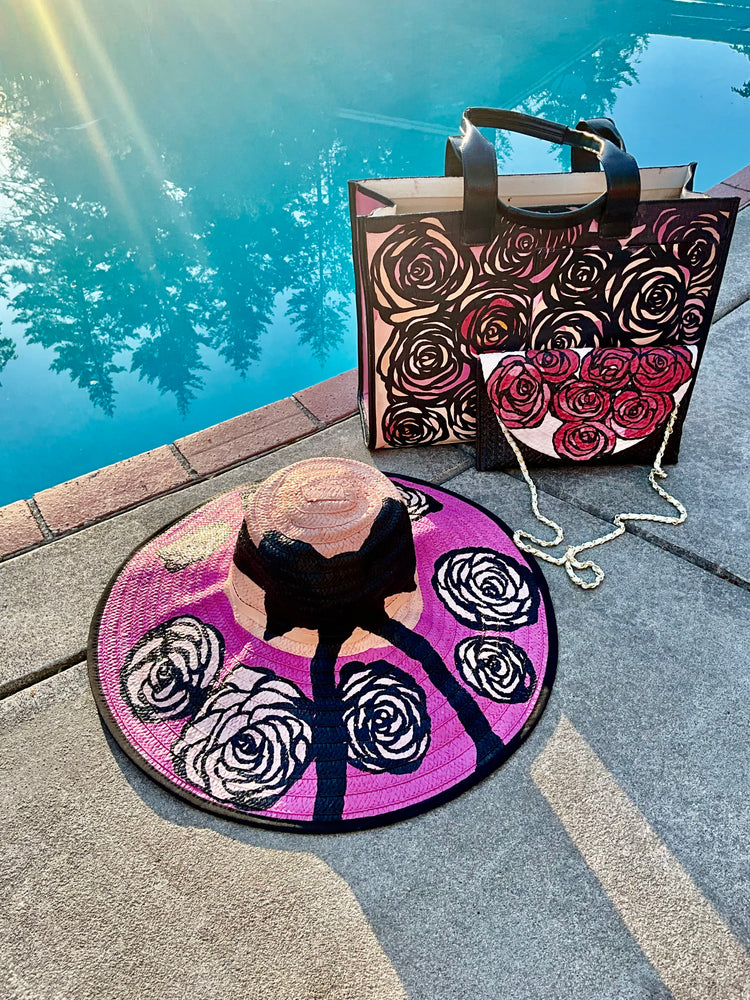 Camellia Turquoise and Golden Double Sided Straw Crossbody Bag/Clutch